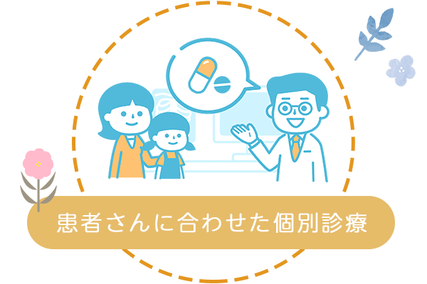 お子様はもちろん、お父さん お母さんも安心して診療を受けていただく為に、ひとりひとり患者さんに合わせた個人診療を行っています。